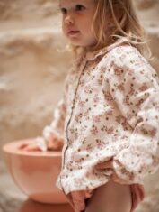 Notre blouse Bianca, revient ce printemps imprimée de jolis boutons de fleurs. Gaze de coton, col fini de dentelle, et manches légèrement bouffantes, elle trouvera vite sa place dans le dressing de vos filles. Elle s’ouvre sur le devant par des petits boutons pour un usage facile au quotidien. Bianca, c’est un bouquet fleuri à porter au quotidien !
