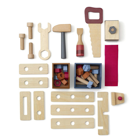 - Contreplaqué, Tournevis, papier de verre, clou, vis, écrou : Bois de bouleau, Marteau : Bois de hêtre, Bois de bouleau, Papier de verre : Nylon