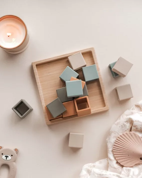 Ce jeu se compose de 16 blocs de quatre couleurs différentes (beige, sirène, sienne, sauge poussiéreuse) et d’une plaque de bois.