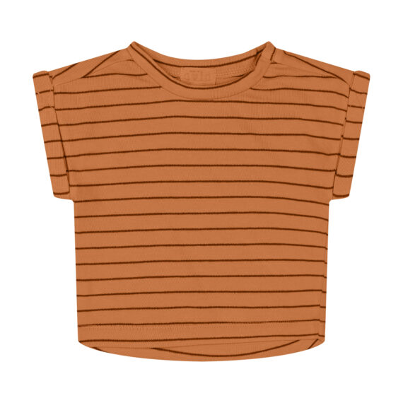 Ce t-shirt à fines rayures a un col rond et des jolies manches courtes.